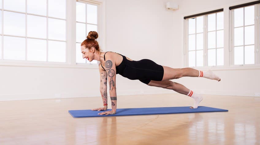 Hi. I'm Lester Logan, and today is a one rep mat class. So this class is not super fast, but it's not slow. Every exercise has its own rhythm, and we're only gonna do each exercise one time. Which means if you are not able to do some of the exercises I am doing, I recommend doing a rep of the exercise before or what's coming after. And you can use this as a workout when you only have about seven minutes, or you can use it to study the order or transitions.