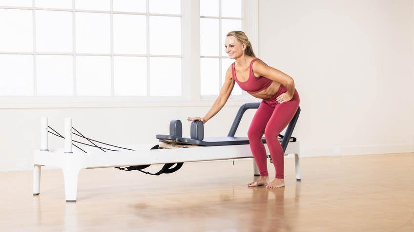Last time, can we do one more after this, and we're gonna try and hold it deep into that lung, reaching forwards? Oh, tremble tremble on that stabilizing leg? And then we slowly, we come in, we hold on to that box, and we close the carriage. Fantastic. How are you feeling? You're feeling good? Hopefully, Well, maybe hopefully this was your first class and you realize that Pilates is not that easy, but it's also not that difficult either, and it's also attainable.