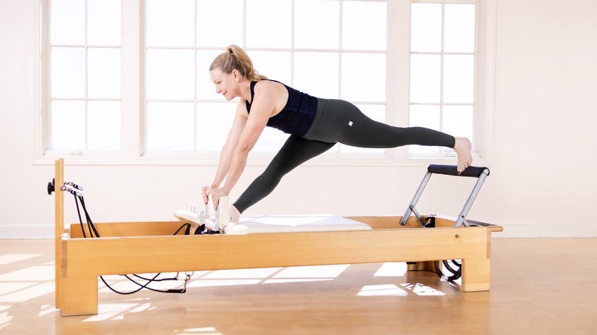 Hey, everybody. It's Amy havens here for some reformer work with you. You're gonna need handles and your loops. If you don't have the handles, that's fine. You can use the loops, but I'd like to use handles for our work and things. Okay? Focusing a little bit more on abdominals and then some splits. In my belief, to be able to balance and do some splits, we've gotta have a lot going on in control and containment and centering and strength. So abdominals.