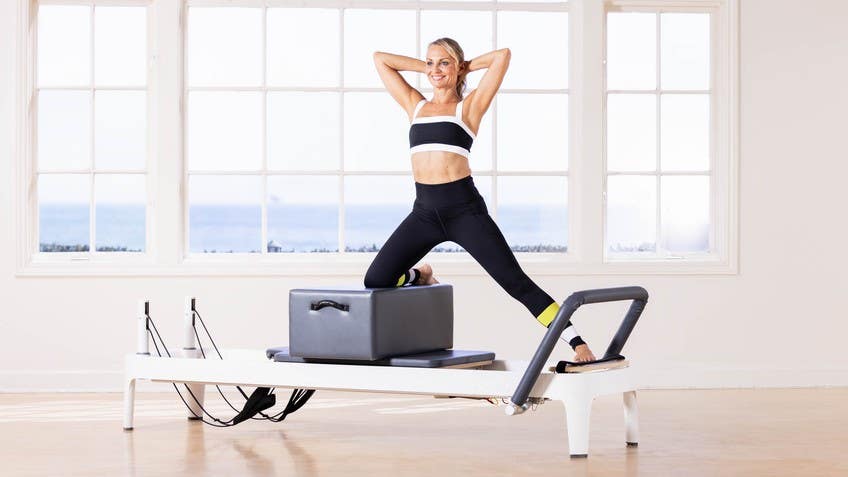 It's your front hamstring. So, yes, you're on a light spring, but I'm working the hamstring. Think of drawing your heel towards your box. We don't have to load the springs up. Sometimes it's harder to go light and really focus on that isometric contraction as you reach out and then we pull it in. Let's do a couple more.