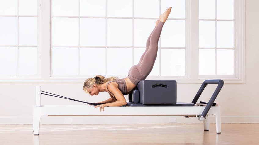 Make sure it's equal on both sides. That's super important every time you bring your box like this. You make sure there is equal both sides. Okay. Safety is everything. Let's put most of your springs on because we're not be using it for any resistance. We're using it for stability right now.